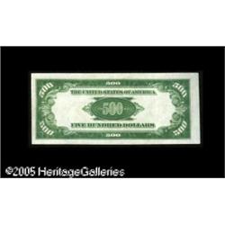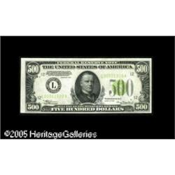 <B>Fr. 2201-L $500 1934 Federal Reserve Note. Light Green Seal. About Uncirculated.</B></I><BR>A very faint center fold from a higher grade.<BR><I>Acquired from Harlan White.</B></I> Lot:16515
