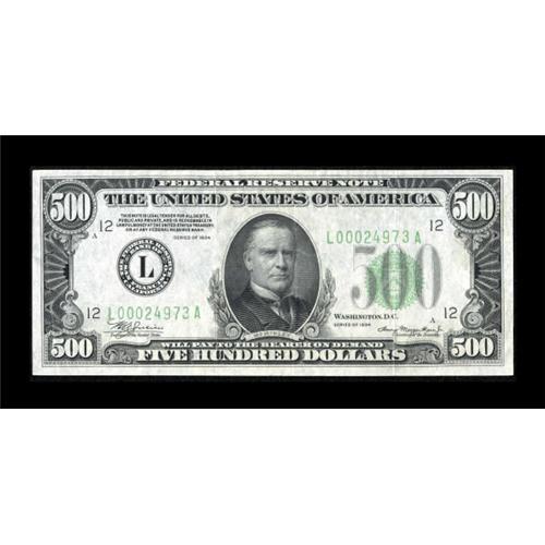 Fr. 2201-L $500 1934 Federal Reserve Note. Very