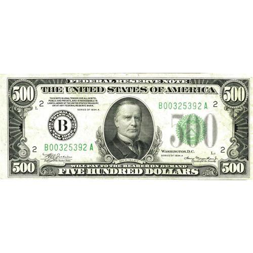 <B>Fr. 2202-B $500 1934A Federal Reserve Note. Extremely Fine.</B></I><BR>A very bright and fresh high denomination example which looks uncirculated until closely examined.