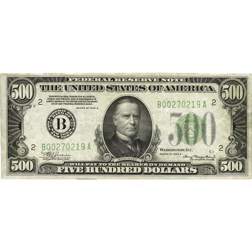 <B>Fr. 2202-B $500 1934A Federal Reserve Note. Extremely Fine.</B></I><BR>A nice well centered high end circulated example. Two pinholes are present but affect nothing.