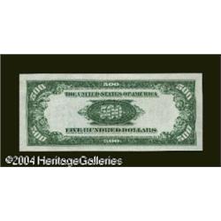 Fr. 2202-B $500 1934A Federal Reserve Note. Gem Crisp U <B>Fr. 2202-B $500 1934A Federal Reserve Note. Gem Crisp Uncirculated.</B></I><BR>A fresh and boldly printed example which makes a perfect type note. <BR><BR><B>Important notice:</B> Heritage usually auctions material at the rate of 200-250 lots per hour. On some occasions eBay Live bid software or the Internet may not be able to keep up with the pace of the auction. We recommend placing a realistic absentee bid now as insurance to avoid disappointment. Occasionally the auctioneer may eliminate or reject an eBay Live bid, and the auctioneer may also reopen a lot after the close of the eBay live bidding (usually because we missed an audience bid), and may reject your bid even if it shows you as the winning bidder. By bidding via eBay Live, you agree that Heritage may award the lot to another bidder at its sole discretion under the circumstances described above or any other reasonable circumstances. Since eBay bids are not shown to us until we open the lot on the floor, we treat those bids just like floor bids. In most cases the floor responds before the eBay bid is presented to us, due to Internet lag time, so for consistency we have made it a policy that floor bids are always considered first over tie eBay live bids. Also please note that all Heritage lots purchased through eBay Live carry a 20% Buyer's Premium. Please make sure you read the Terms and Conditions before you bid. This lot is being auctioned in conjunction with a live floor auction by Heritage Galleries & Auctioneers. All final auction and invoice information will be supplied by Heritage Galleries & Auctioneers, and all other information should be considered preliminary. Lot:16502