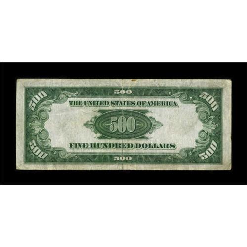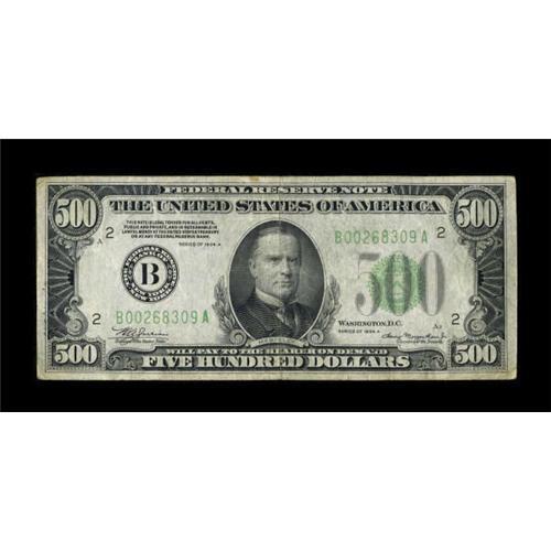 <B>Fr. 2202-B $500 1934A Federal Reserve Note. Very Fine-Extremely Fine.</B></I><BR> This is the consummate type note in a nice collector grade. At back top center is a small spot.<BR><BR><b>Shipping:</b> Coins & Currency (<a target="_blank" href="http://www.heritageauctions.com/common/shipping.php">view shipping information</a>)
