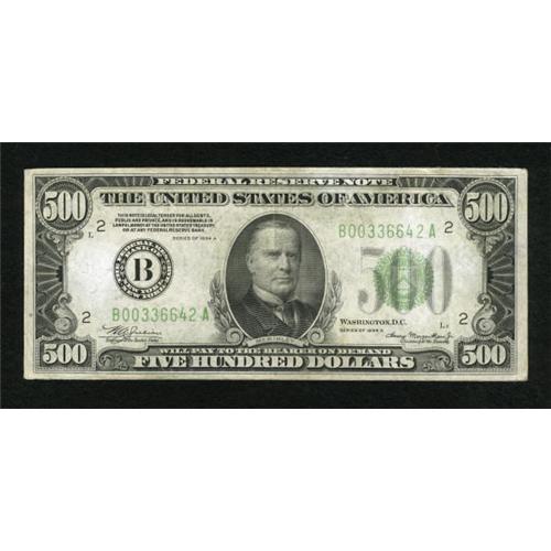 Fr. 2202-B $500 1934A Federal Reserve Note.