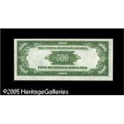 <B>Fr. 2202-C $500 1934A Federal Reserve Note. Mule. Choice Crisp Uncirculated.</B></I><BR>Original and very close to Gem. Lot:16524