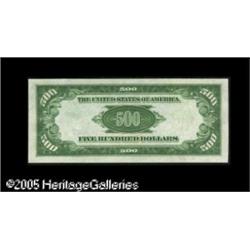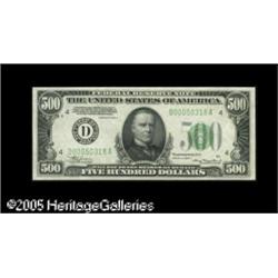 <B>Fr. 2202-D $500 1934A Federal Reserve Note. Mule. Choice Crisp Uncirculated.</B></I><BR>An evenly centered note with just a caress of handling removing it from the Gem classification. Lot:16525