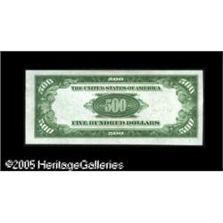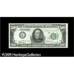 <B>Fr. 2202-E $500 1934A Federal Reserve Note. Mule. Choice Crisp Uncirculated.</B></I><BR>A cracklingly fresh and original example with great color and paper quality. This example, from the scarcer Richmond district, is a real winner. Lot:16526