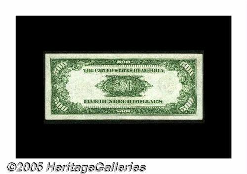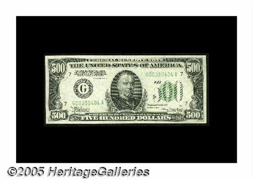 <B>Fr. 2202-G $500 1934A Federal Reserve Note. Choice Crisp Uncirculated.</B></I><BR>A nicely centered $500 displaying just a few small traces of handling.