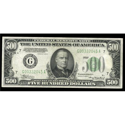 Fr. 2202-G $500 1934A Federal Reserve Note. Extremely F Fr. 2202-G $500 1934A Federal Reserve Note.