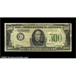 Fr. 2202-G $500 1934A Federal Reserve Note. Very Fine.The note is a little aged and there are a coup