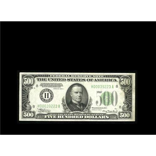 <B>Fr. 2202-H $500 1934A Federal Reserve Note. Choice Crisp Uncirculated.</B></I><BR>An attractive St. Louis district example with just a bit of handling evident.