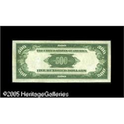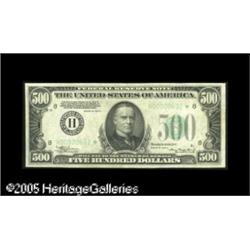 <B>Fr. 2202-H* $500 1934A Federal Reserve Note. Very Fine-Extremely Fine.</B></I><BR>An excessively rare note which, according to Steve Sullivan's newly released research, is unique for the district in this series. There are a few repairs which must be mentioned, including a small internal tear which has been sealed. Lot:16532