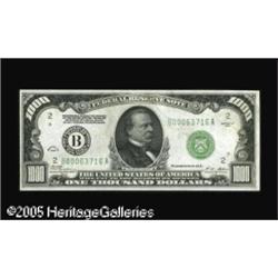 <B>Fr. 2210-B $1000 1928 Federal Reserve Note. Extremely Fine.</B></I><BR>The surfaces are soft and the left margin trimmed quite tight. Lot:16538