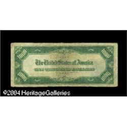 Fr. 2210-E* $1,000 1928 Federal Reserve Note. Very Go <B>Fr. 2210-E* $1,000 1928 Federal Reserve Note. Very Good-Fine.</B></I><BR>An extraordinary new discovery and a rarity of the highest magnitude. We know of no other Series 1928 $1000 star notes from the Richmond district, and, with a printing of just 360 pieces, this example may well remain unique forever. It bears serial number E00000002*, which likely accounts for its survival, as it appears to have been carried and displayed as a pocket piece for many years. While clearly well circulated, it is problem free for the grade and eminently collectible. It's listed without price in the new Oakes reference, but if rarity and demand are any guide here, expect our estimate to look very conservative by the time the hammer falls tonight. <BR><BR><B>Important notice:</B> Heritage usually auctions material at the rate of 200-250 lots per hour. On some occasions eBay Live bid software or the Internet may not be able to keep up with the pace of the auction. We recommend placing a realistic absentee bid now as insurance to avoid disappointment. Occasionally the auctioneer may eliminate or reject an eBay Live bid, and the auctioneer may also reopen a lot after the close of the eBay live bidding (usually because we missed an audience bid), and may reject your bid even if it shows you as the winning bidder. By bidding via eBay Live, you agree that Heritage may award the lot to another bidder at its sole discretion under the circumstances described above or any other reasonable circumstances. Since eBay bids are not shown to us until we open the lot on the floor, we treat those bids just like floor bids. In most cases the floor responds before the eBay bid is presented to us, due to Internet lag time, so for consistency we have made it a policy that floor bids are always considered first over tie eBay live bids. Also please note that all Heritage lots purchased through eBay Live carry a 20% Buyer's Premium. Please make sure you read the Terms and Conditions before you bid. This lot is being auctioned in conjunction with a live floor auction by Heritage Galleries & Auctioneers. All final auction and invoice information will be supplied by Heritage Galleries & Auctioneers, and all other information should be considered preliminary. Lot:16515