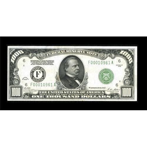 <B>Fr. 2210-F $1000 1928 Federal Reserve Note. Extremely Fine.</B></I><BR> Some discoloration is noticed on the back near bottom center on this otherwise bright Atlanta early high denomination.<BR><BR><b>Shipping:</b> Coins & Currency (<a target="_blank" href="http://www.heritageauctions.com/common/shipping.php">view shipping information</a>)