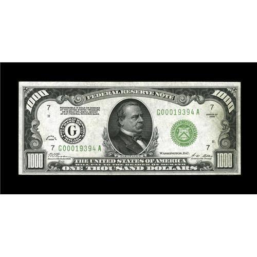 <B>Fr. 2210-G $1000 1928 Federal Reserve Note. Crisp Uncirculated.</B></I><BR>Bright and displaying excellent color, this 1928 series example is just a handling mark and a bit of bottom margin from the full Choice grade.<BR><BR><b>Shipping:</b> Coins & Currency (<a target="_blank" href="http://www.heritageauctions.com/common/shipping.php">view shipping information</a>)