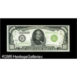 <B>Fr. 2210-H $1000 1928 Federal Reserve Note. About Uncirculated.</B></I><BR>While not recognized in the Oakes reference, this is the Light Green Seal variety. Lot:16548