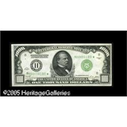 <B>Fr. 2210-H* $1000 1928 Federal Reserve Note. Crisp Uncirculated.</B></I><BR>One of the great star notes in this wonderful collection, as this is the highest grade of any of the ten reported Series 1928 thousands from all districts combined. It's the only example graded as uncirculated, and also the sole specimen reported in the new Sullivan census from the St. Louis district. There are old sheet folds in the top and bottom margins but the note is unquestionably new and certainly fit for the very finest of collections. Expect some spirited competition before the hammer falls here tonight, likely in the range of... Lot:16549
