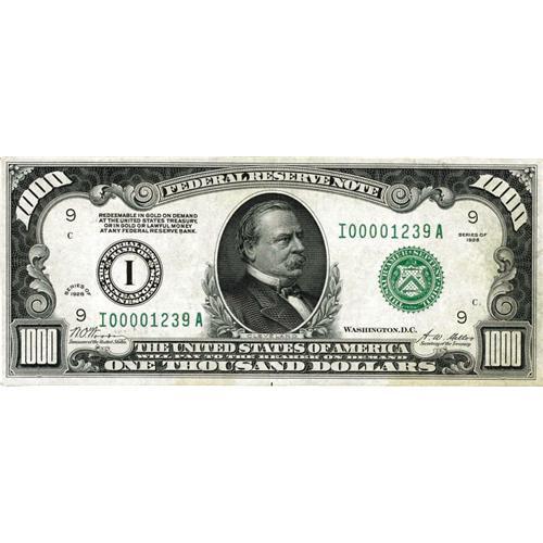 <B>Fr. 2210-I $1000 1928 Federal Reserve Note. Extremely Fine-About Uncirculated.</B></I><BR>An excessively rare note from the district with by far the smallest issue of any in the 1928 series. This lovely bright white example has plenty of embossing present, but a bit of coaxing releases three of the lightest folds imaginable.