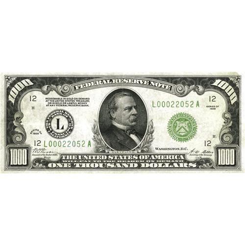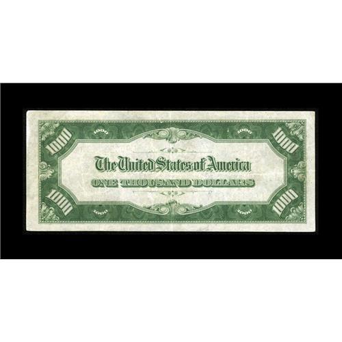 <B>Fr. 2210-L $1000 1928 Federal Reserve Note. Very Fine.</B></I><BR>Nicely centered is this darkly inked example with a pinhole.