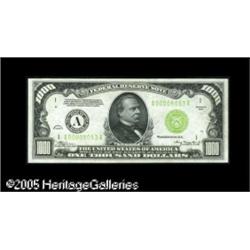 <B>Fr. 2211-A $1000 1934 Federal Reserve Note. Light Green Seal. Gem Crisp Uncirculated.</B></I><BR>A fresh and perfectly original beauty. Those who collect this challenging series know just how difficult the Light Green Seals are to find. The Boston district is one of the most difficult to obtain in any grade, much less the condition this note is in. Expect some stiff competition on this lot. Lot:16554