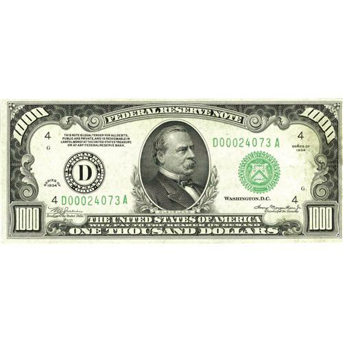 <B>Fr. 2211-D $1000 1934 Federal Reserve Note. Choice Crisp Uncirculated.</B></I><BR>A fully original example with good color and excellent eye appeal.