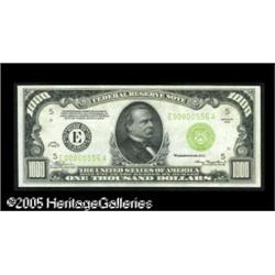 <B>Fr. 2211-E $1000 1934 Federal Reserve Note. Light Green Seal. Gem Crisp Uncirculated.</B></I><BR>A note of exceptional quality, with the added bonus of a low serial number. With a print run of only 19,500 pieces, the Richmond district is quite elusive, particularly in this superlative condition. This is one of the nicest of the long run of $1,000's we offer tonight and merits careful attention from the collector whose focus is on both quality and rarity. Expect to see some stiff bidding competition, likely culminating at a level of no less than... Lot:16562