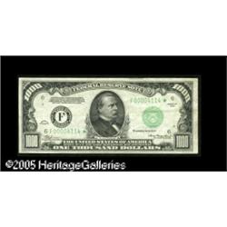 <B>Fr. 2211-F* $1000 1934 Federal Reserve Note. Extremely Fine.</B></I><BR>A high grade star which is one of just six listed from here in Steve Sullivan's new census. Lot:16566
