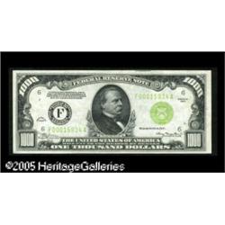 <B>Fr. 2211-F $1000 1934 Federal Reserve Note. Light Green Seal Choice Crisp Uncirculated.</B></I><BR>The paper surfaces are crackling fresh and original on this scarce light green seal variety. We'd have classified this example as a Gem with a bit more bottom margin. As it lays, the centering is quite within acceptable limits and is not at all distracting. Lot:16563