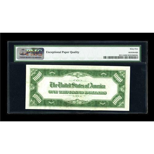 <B>Fr. 2211-G $1000 1934 Federal Reserve Note. PMG Gem Uncirculated 65 EPQ.</B></I><BR>Bright paper and solid embossing are the hallmarks of this Chicago note.<BR><BR><b>Shipping:</b> Coins & Currency (<a target="_blank" href="http://www.heritageauctions.com/common/shipping.php">view shipping information</a>)