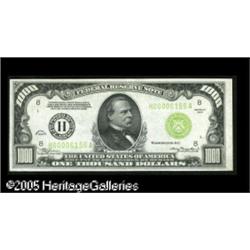 <B>Fr. 2211-H $1000 1934 Federal Reserve Note. Light Green Seal. Choice Crisp Uncirculated.</B></I><BR>A very lovely example of the scarce light green seal variety. The centering is a bit less than perfect, but the colors are vivid and the note makes a striking overall appearance. Lot:16570