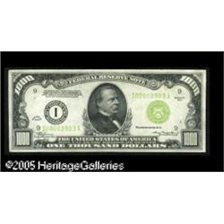 <B>Fr. 2211-I $1000 1934 Federal Reserve Note. Light Green Seal. Very Fine.</B></I><BR>A middle grade note from the scarce Minneapolis district, with a scant 12,000 printed in both seal varieties. Pressed in an effort to minimize the several folds present, but overall still quite nice looking. Lot:16573