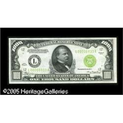 <B>Fr. 2211-L $1000 1934 Federal Reserve Note. Light Green Seal Choice Crisp Uncirculated.</B></I><BR>An original and pack fresh example of the scarce light green seal variety from the always popular San Francisco district. Just a minor hint of handling from Gem.<BR><I>Acquired from MidAmerican Currency.</B></I> Lot:16580