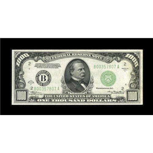 <B>Fr. 2212-B $1000 1934A Federal Reserve Note. Very Choice Crisp Uncirculated.</B></I><BR>A slight frame shift and slightly weak printing keep this desirable note from the next grade.<BR><BR><b>Shipping:</b> Coin/Currency (<a target="_blank" href="http://www.heritageauctions.com/common/shipping.php">view shipping information</a>)