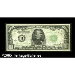 <B>Fr. 2212-B* $1000 1934A Federal Reserve Note. Very Fine.</B></I><BR>While long acknowledged to be quite scarce, 1934A star thousands have been revealed as major rarities with the publication of Steve Sullivan's new high denomination census, which shows just one example reported from the New York district, five from the Chicago district, and none from any other issuing district. Expect this unique item to easily reach and likely exceed... Lot:16584