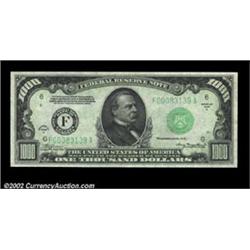 Fr. 2212-F $1000 1934A Federal Reserve Note. Gem Crisp Uncirculated.A lovely example with letter perfect centering on both face and back. This is not a common district for thousands, especially those in this grade. Important notice: We expect to be auctioning lots at the rate of 200-250 per hour. Sometimes eBay Premier live bid software cannot keep up with that pace, so we strongly recommend that you place a realistic proxy bid now as insurance to avoid disappointment. Also please note that all Heritage/CAA lots purchased through eBay Premier carry a 20% Buyer's Premium. Please make sure you read the Terms and Conditions.