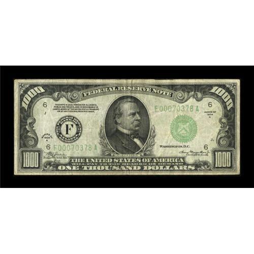 <B>Fr. 2212-F $1000 1934A Federal Reserve Note. Very Fine.</B></I><BR> Plenty of crispness remains on this Atlanta $1000 FRN.<BR><BR><b>Shipping:</b> Coins & Currency (<a target="_blank" href="http://www.heritageauctions.com/common/shipping.php">view shipping information</a>)