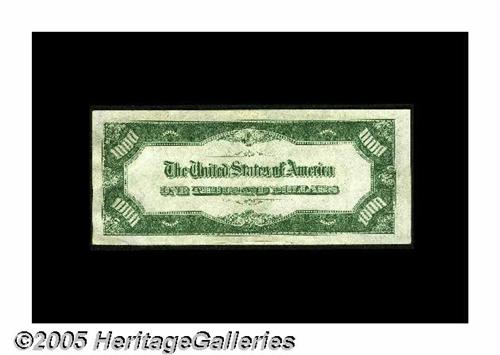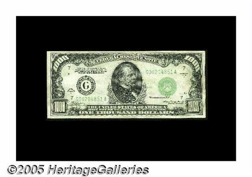 <B>Fr. 2212-G $1000 1934A Federal Reserve Note. About Uncirculated.</B></I><BR>Fresh, original, and just a center fold and a bit of handling from new.