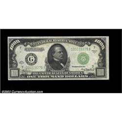 Fr. 2212-G $1000 1934A Federal Reserve Note. About Uncirculated.Fully new but for one center fold. Important notice: We expect to be auctioning lots at the rate of 200-250 per hour. Sometimes eBay Premier live bid software cannot keep up with that pace, so we strongly recommend that you place a realistic proxy bid now as insurance to avoid disappointment. Also please note that all Heritage/CAA lots purchased through eBay Premier carry a 20% Buyer's Premium. Please make sure you read the Terms and Conditions.