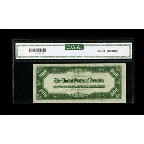 <B>Fr. 2212-G $1000 1934A Federal Reserve Note. CGA About Uncirculated 50.</B></I><BR> Gem sized margins are evident on this piece. A centerfold is noted, as is some handling.<BR><BR><b>Shipping:</b> Coins & Currency (<a target="_blank" href="http://www.heritageauctions.com/common/shipping.php">view shipping information</a>)