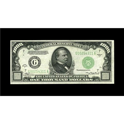 <B>Fr. 2212-G $1000 1934A Federal Reserve Note. Choice Crisp Uncirculated.</B></I><BR>Embossing is observed on this $1000.
