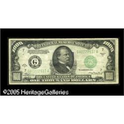<B>Fr. 2212-G $1000 1934A Federal Reserve Note. Mule. Very Fine.</B></I><BR>A nice circulated budget priced $1,000 with a partial bank stamp on the face. An ideal note for the collector who seeks an example for type and wants to have funds remaining for additional purchases. Lot:16590