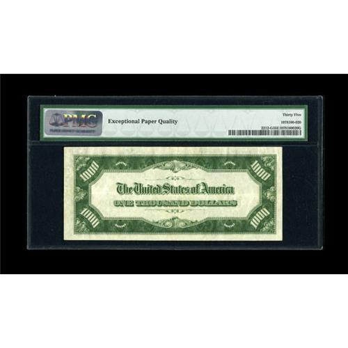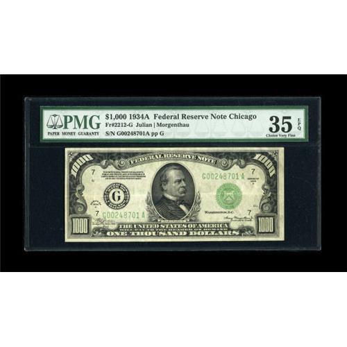 <B>Fr. 2212-G $1000 1934A Federal Reserve Note. PMG Choice Very Fine 35 EPQ.</B></I><BR> This piece has all the eye appeal of an EF as there are only three folds.<BR><BR><b>Shipping:</b> Coins & Currency (<a target="_blank" href="http://www.heritageauctions.com/common/shipping.php">view shipping information</a>)