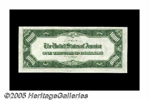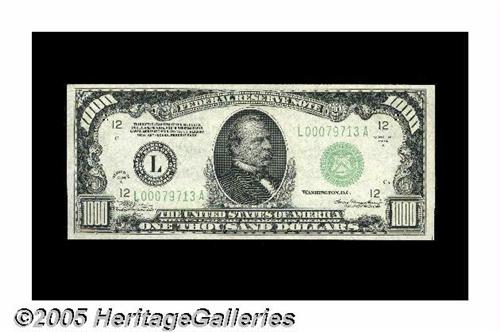 <B>Fr. 2212-L $1000 1934A Federal Reserve Note. Choice Crisp Uncirculated.</B></I><BR>An attractive example with bright colors. <B>Choice Crisp Uncirculated.</B></I>