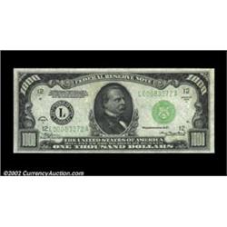 Fr. 2212-L $1000 1934A Federal Reserve Note. Gem Crisp Uncirculated.There are a couple of miniscule handling marks, but to call this fresh and well centered beauty anything less than gem would be a travesty. Important notice: We expect to be auctioning lots at the rate of 200-250 per hour. Sometimes eBay Premier live bid software cannot keep up with that pace, so we strongly recommend that you place a realistic proxy bid now as insurance to avoid disappointment. Also please note that all Heritage/CAA lots purchased through eBay Premier carry a 20% Buyer's Premium. Please make sure you read the Terms and Conditions.