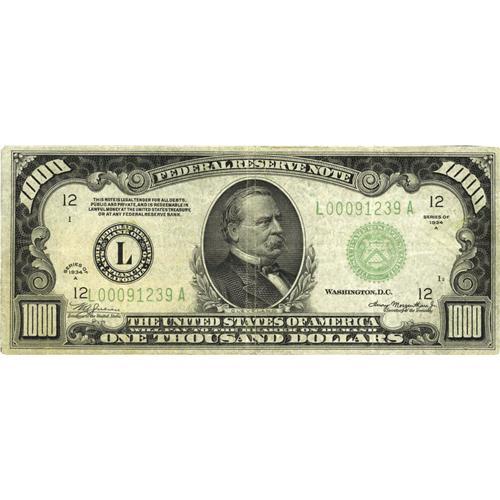 <B>Fr. 2212-L $1000 1934A Federal Reserve Note. Very Fine.</B></I><BR>Sound edges and nice centering on this note.