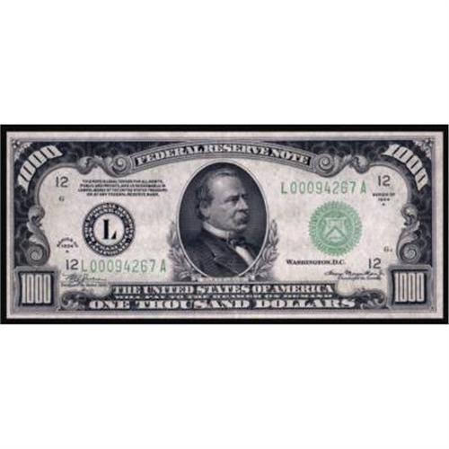 Fr. 2212-L. 1934A $1,000 Federal Reserve Note. PMG About Uncirculated 55.
