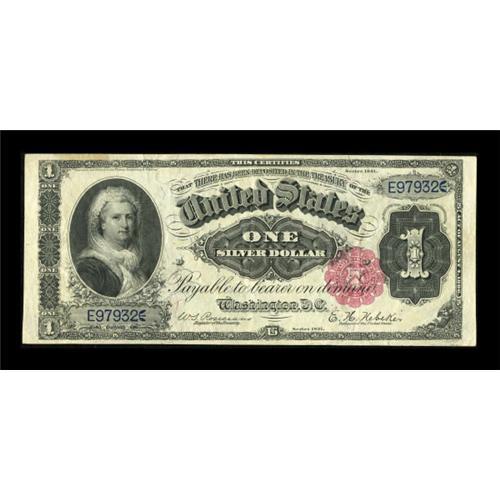 <B>Fr. 222 $1 1891 Silver Certificate Very Fine-Extremely Fine.</B></I> From an earlier Heritage auction where it was described, "Perfectly original, this high-end Very Fine would be an ideal example of the grade save for a light stain at the upper left, which is wholly in the margin. Fr. 222 is the much scarcer signature combination of this two-number type."<BR><BR><b>Shipping:</b> Coins & Currency (<a target="_blank" href="http://www.heritageauctions.com/common/shipping.php">view shipping information</a>)