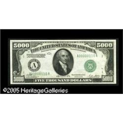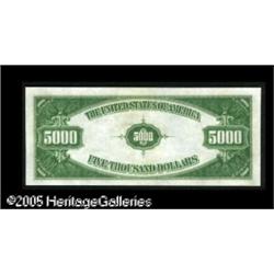 <B>Fr. 2220-A $5000 1928 Federal Reserve Note. Gem Crisp Uncirculated.</B></I><BR>A magnificent note which is part of a run of four consecutive pieces which constitutes the complete census of known examples from the Boston district in this series. We have handled three of these pieces over the years, and each one is a well centered example with colors as bright as the day the note left the press nearly eighty years ago. Lot:16596