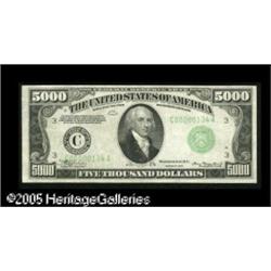 <B>Fr. 2221-C $5000 1934 Federal Reserve Note. Extremely Fine.</B></I><BR>This is one of just four Philadelphia district 1934 $5000's listed in the new Sullivan census. It's an attractive piece which is one of the nicer examples recorded. Expect this very scarce item to easily reach and perhaps exceed... Lot:16602