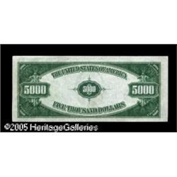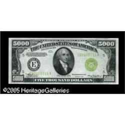 <B>Fr. 2221-E $5000 1934 Federal Reserve Note. Crisp Uncirculated.</B></I><BR>One corner tip fold is all that separates this bright and attractive $5000 note from an even higher grade. The new Sullivan census shows six examples known from the Richmond district, all but one listed as CU, with most in a run from serial number E00000114A through E00000121A. Lot:16603